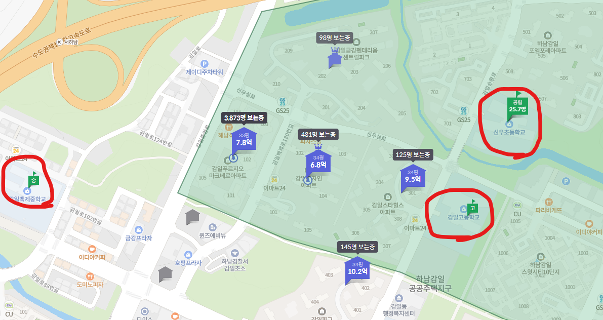 초등학교는 신우초등학교로 배정이 되며 주변에 초중고가 위치해있습니다.