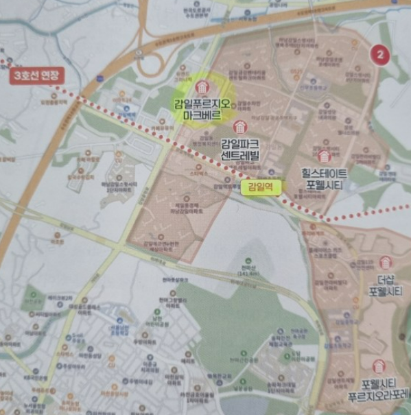 28년 3월 3호선 감일역이 연장되면 강남의 접근성이 더욱 좋아지며 약 20분이면 접근이 가능하여