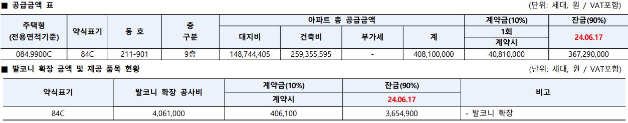 | 84C(211동 901호) | 408,100,000 | 4,061,000 | 25,920,000 | 438,081,000 |