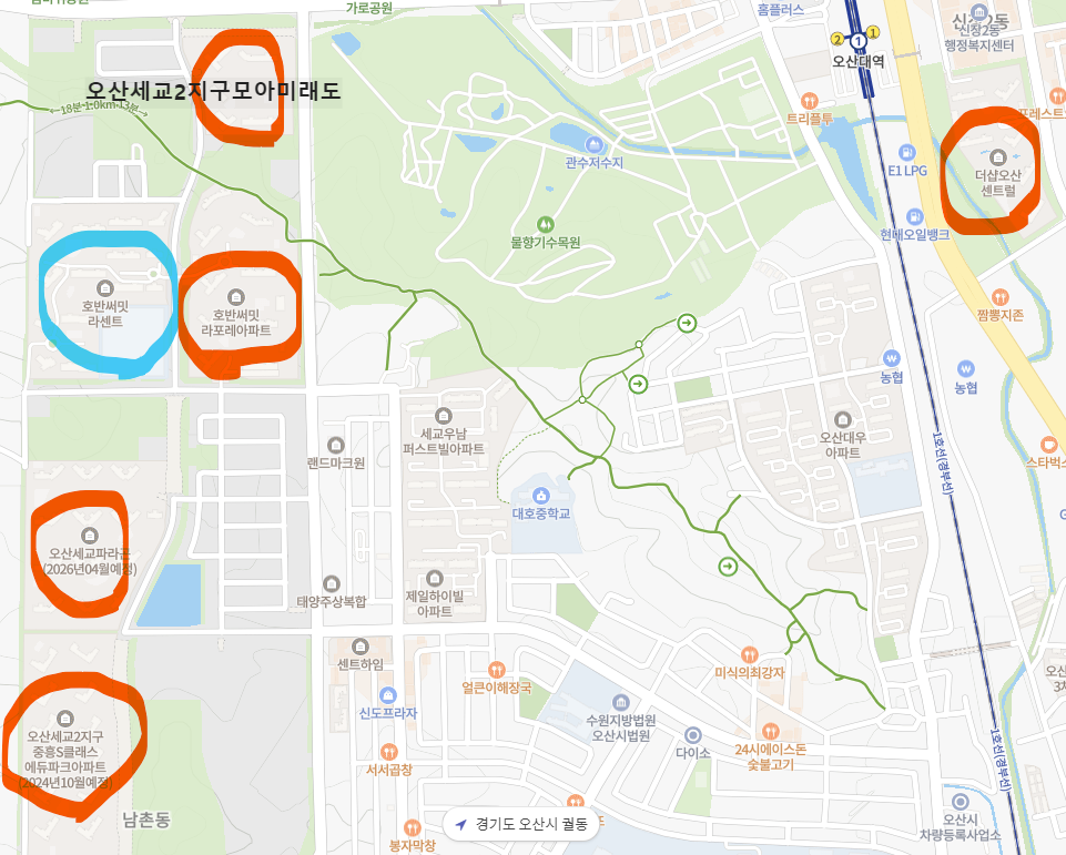 호반써밋라센트, 호맛써밋라포레, 오산세교2지구모아미래도, 오산세교파라곤, 오산세교2지구 중흥s클래스 에듀파크