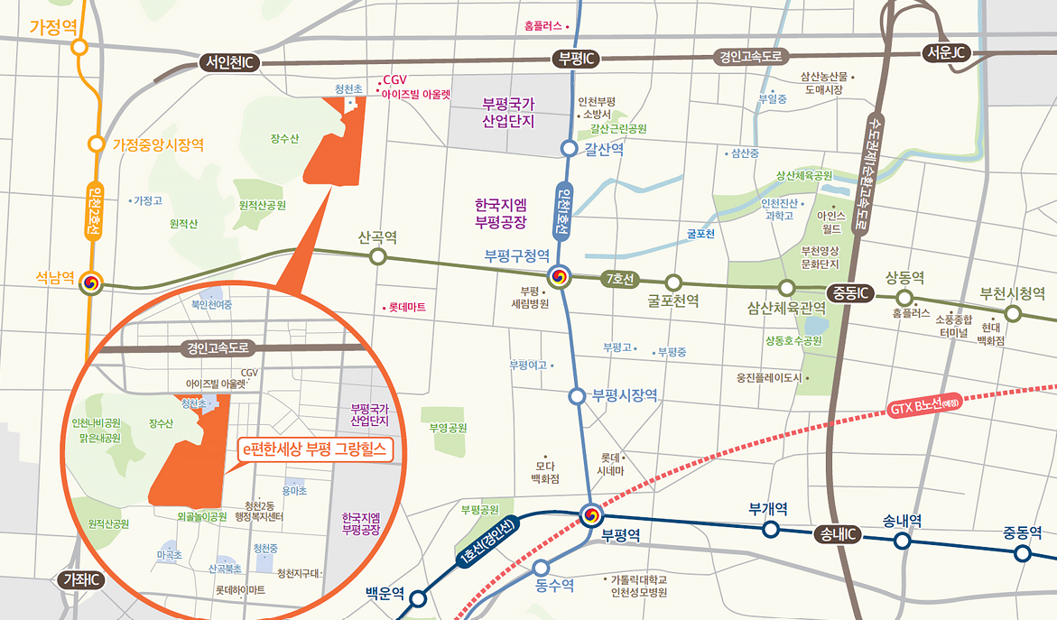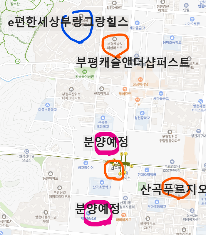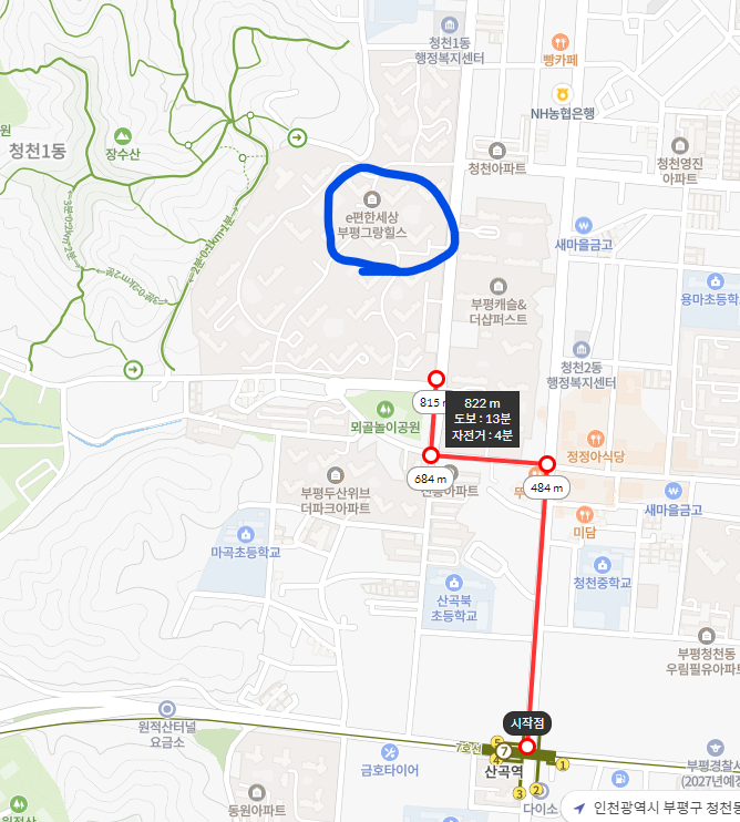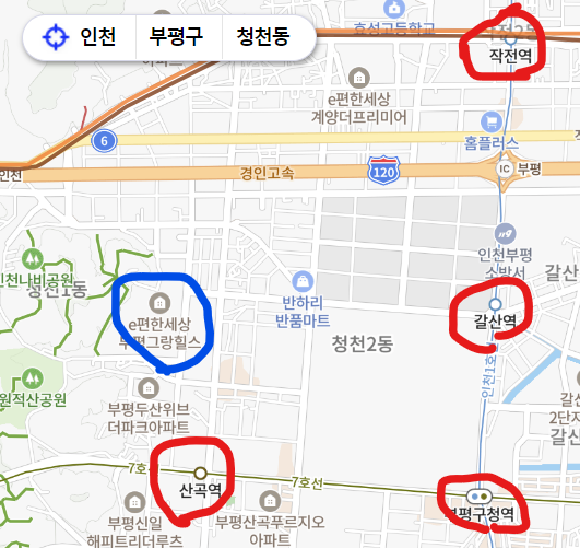 산곡역에서 도보 13분 정도 걸립니다.(제일 가까운순으로)