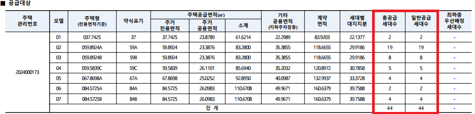총세대수: 총 5,050세대 중 보류지 분양 44세대(일반공급)