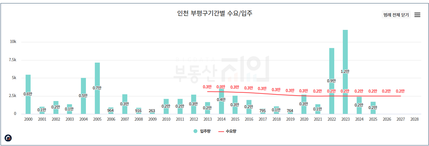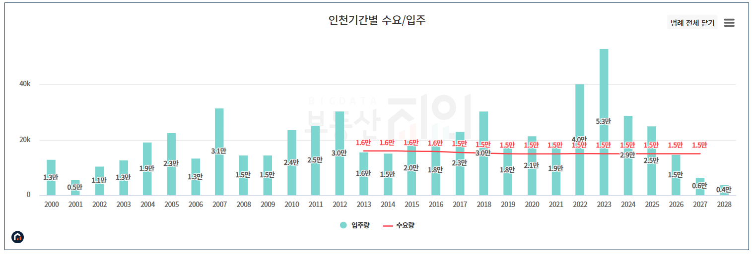 앞으로 27년 이후부터는 인천의 아파트 공급량도 급격하게 줄어들고