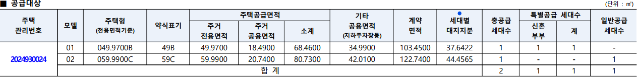 공급대상: 공공분양주택 647세대 중 계약취소 주택 2세대[특별공급 1세대(신혼부부 1세대), 일반공급 1세대]