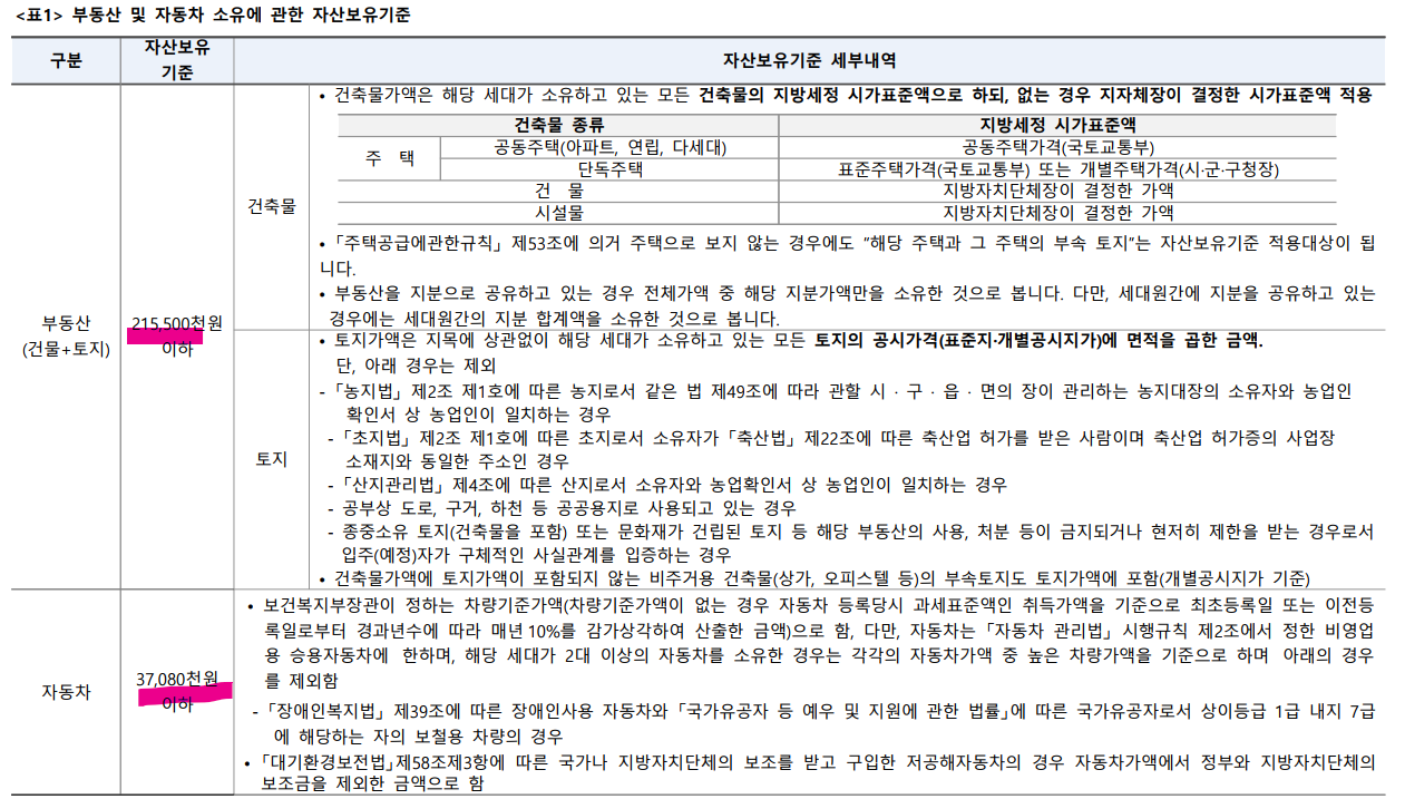 ※ 자산보유기준 적용: 당첨자(예비입주자 포함 이하 같음)로 선정되신 분의 보유자산을 당첨자 서류접수 후 한국사회보장정보원의 사회보장정보시스템을 통해 조사 확정하게 됩니다. 따라서 공고일 이후 변동된 자산 금액이 조회된 경우 해당 금액을 당사자의 자산 금액으로 간주합니다.