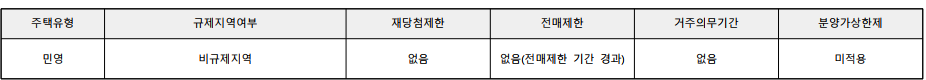 ※ 재당첨제한: 없음 / 전매제한: 없음(전매제한 기간 경과) / 거주의무기간: 없음