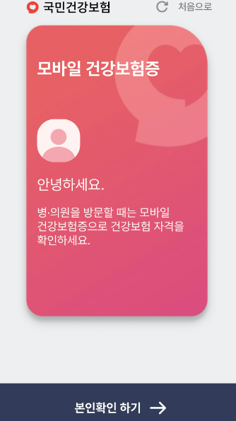 모바일 건강보험증 발급은 신분증으로 사용할 수 있습니다.