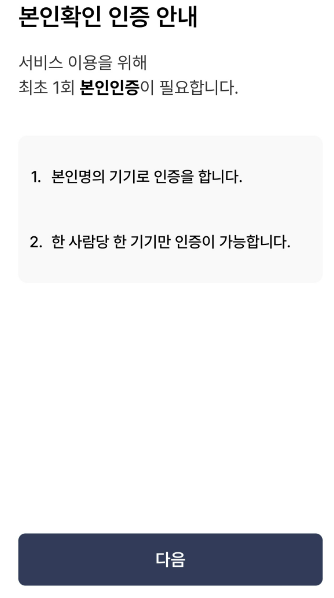 | 안되는 경우 | 신분증 사본(캡쳐본, 사진 등), 각종 자격증 등 전자신분증이 아니므로 본인확인 불가 |
