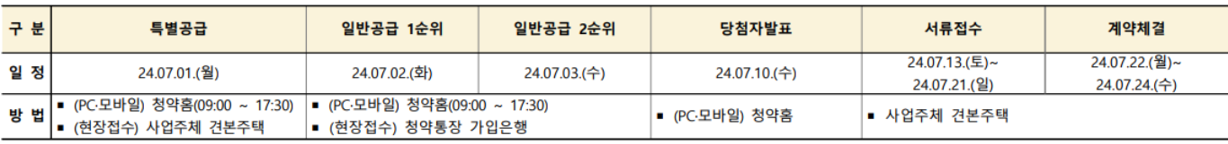일반공급 1순위 일정: 24년 7월 2일(화)