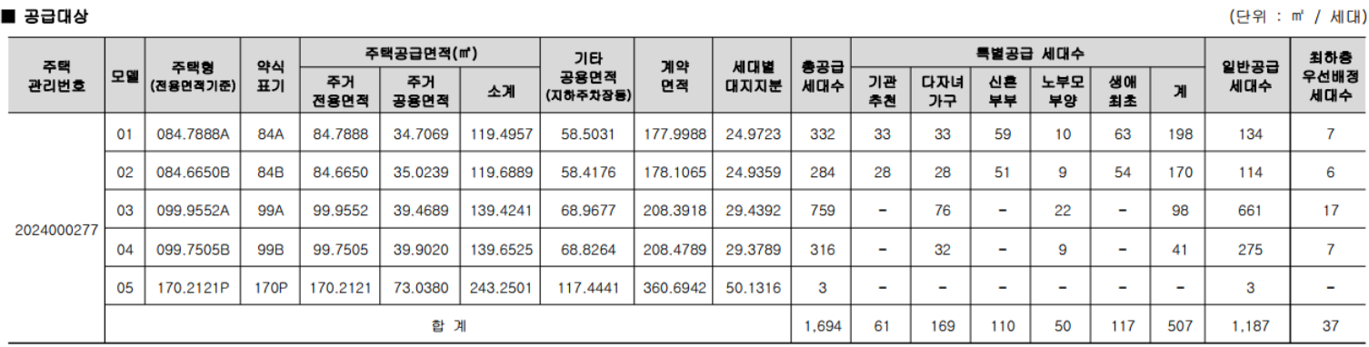 [특별공급 507세대(기관추천 61세대, 다자녀가구 169세대, 신혼부부 110세대, 노부모부양 50세대, 생애최초 117세대) 포함]