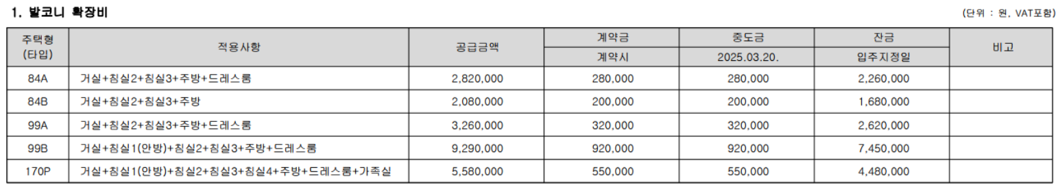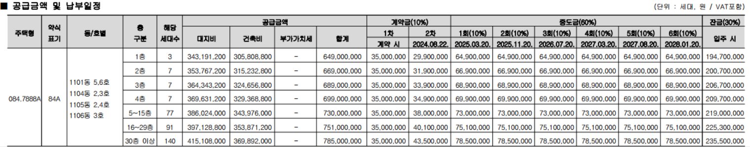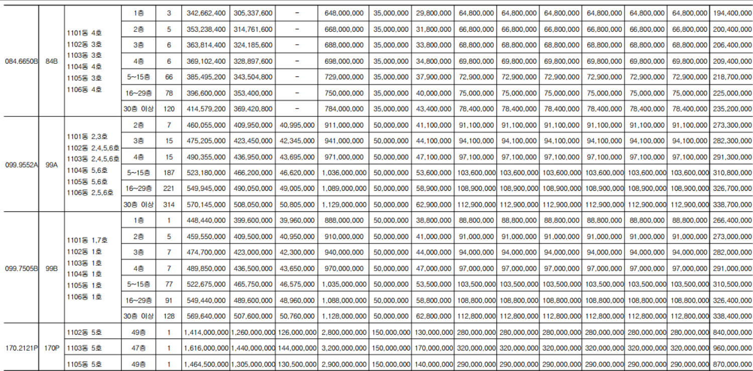 | 주택형 | 최저층 가격 - 최고층 가격 | 공급세대수 |