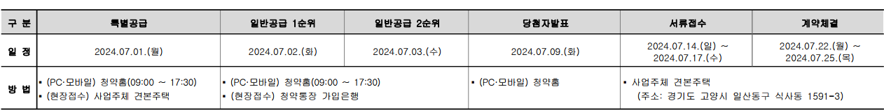 일반공급 1순위 일정: 24년 7월 2일(화)