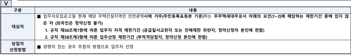 ■ 본 계약취소주택 입주자모집공고일(24.7.4) 현재 인천광역시에 거주(주민등록표등본 기준)하는 만19세 이상인 분 또는 세대주인 미성년자(자녀양육, 형제자매부양)의 경우 청약이 가능합니다. (외국인 제외)