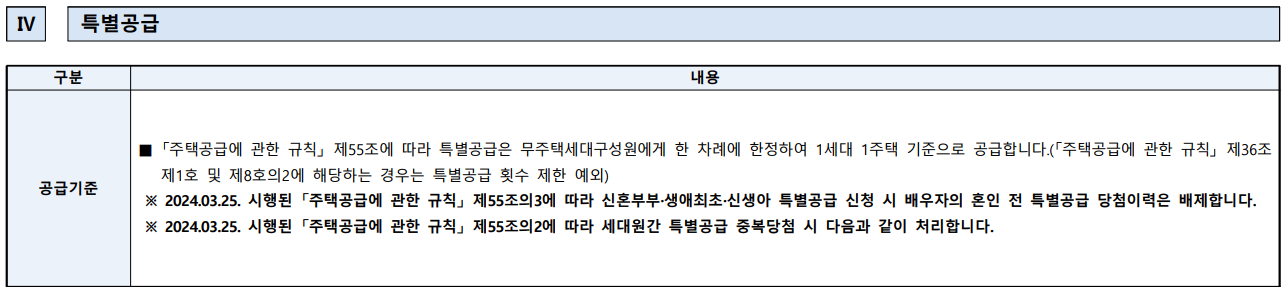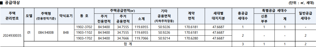 | 주택형 | 특별공급 세대수(세대) | 일반공급 세대수(세대) |