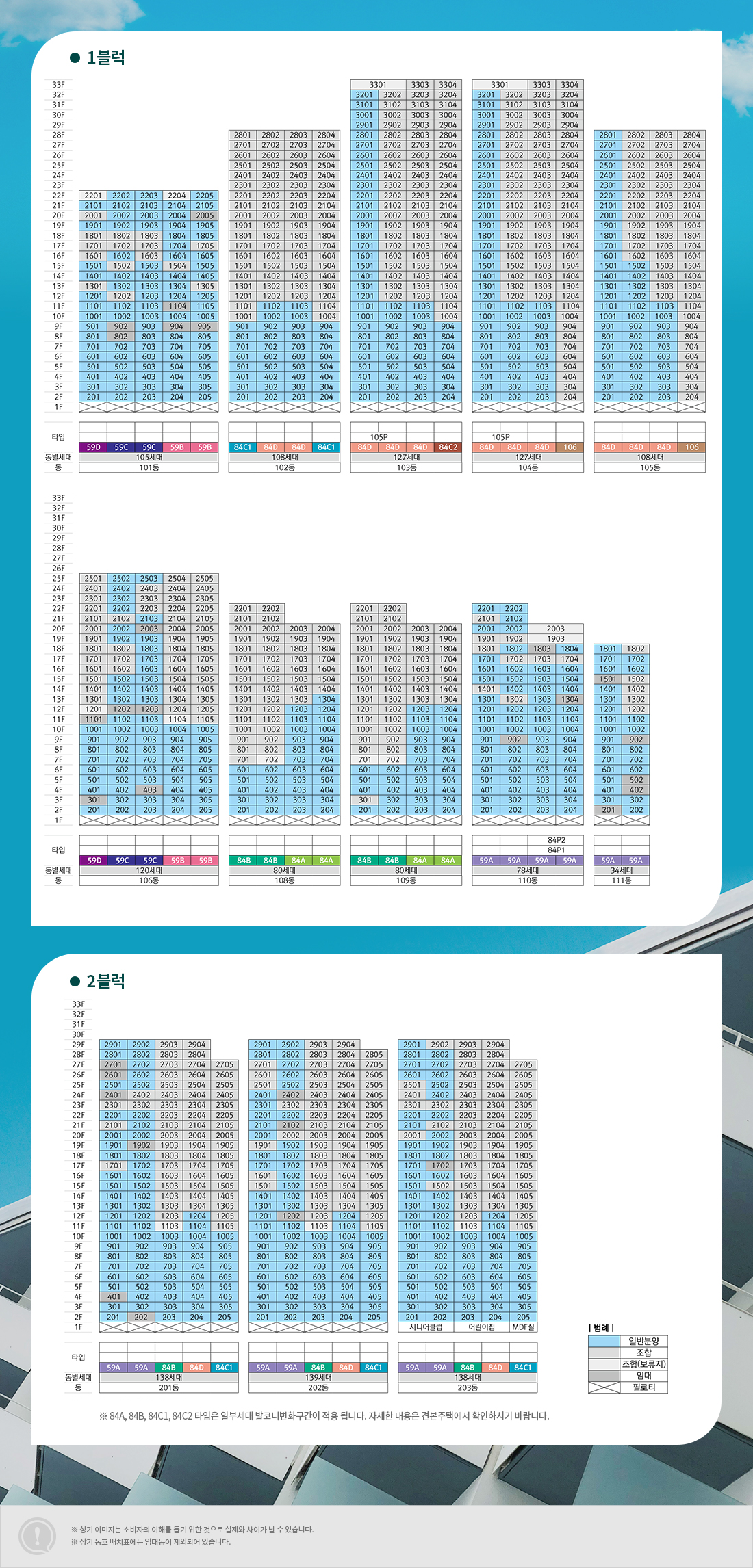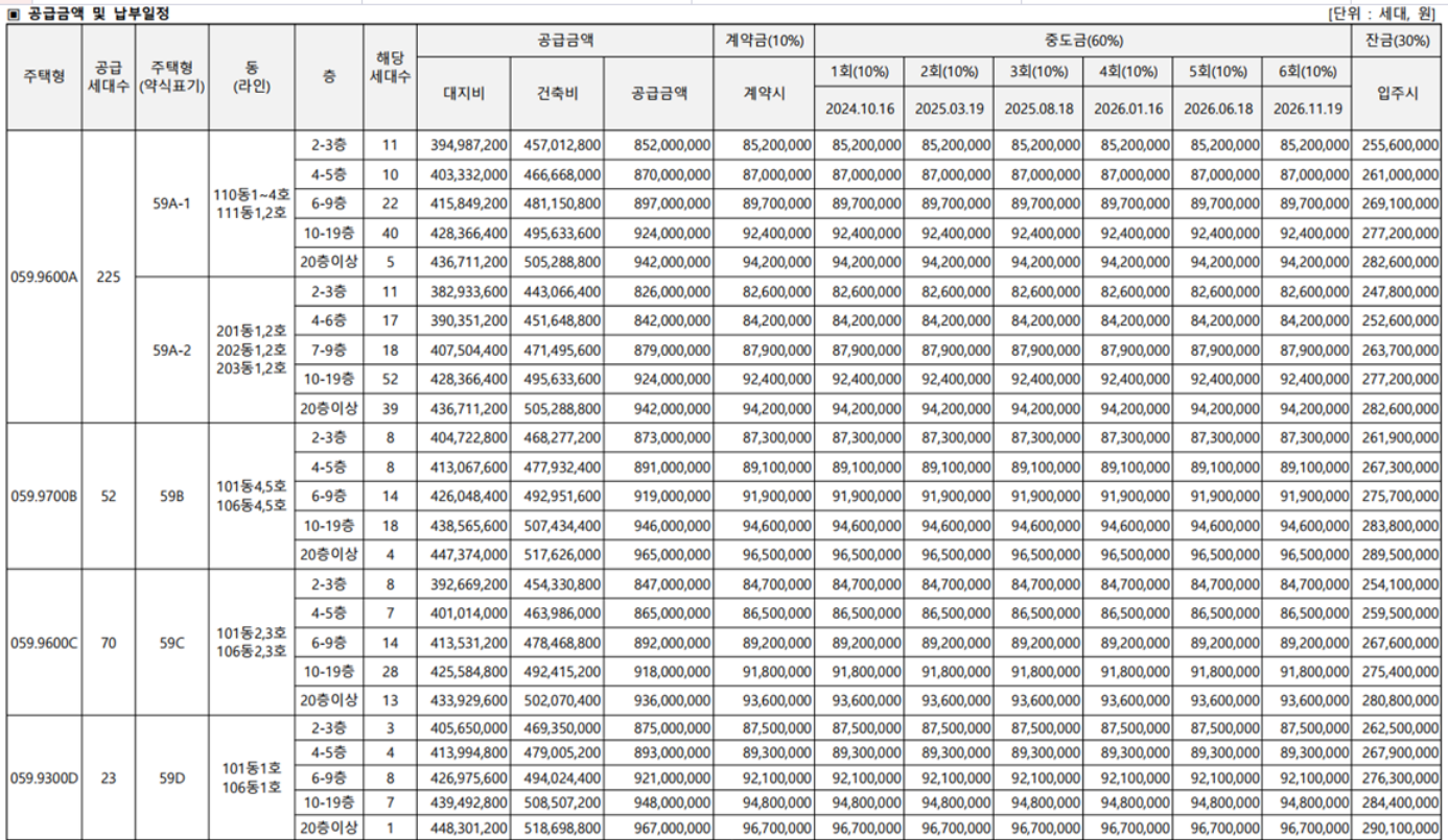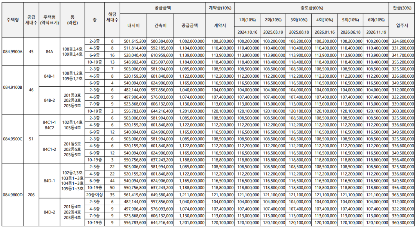 | 주택형 | 최저층 가격 - 최고층 가격 | 공급세대수 |