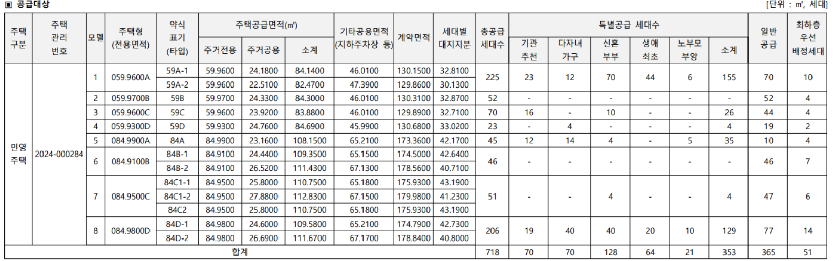 | 주택형 | 특별공급 세대수(세대) | 일반공급 세대수(세대) |