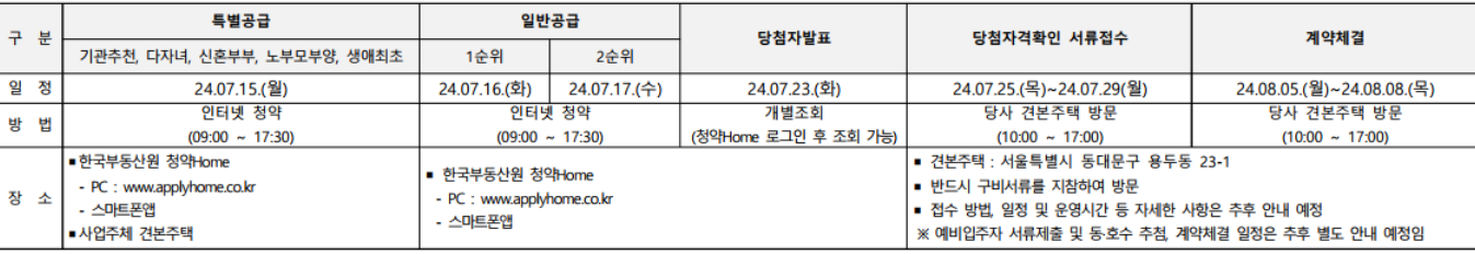 일반공급 1순위 일정: 24년 7월 16일(화)