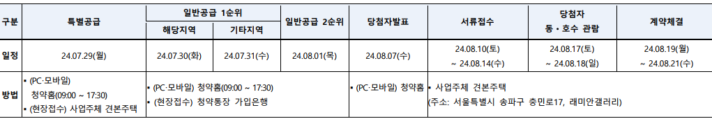 일반공급 2순위 일정: 24년 8월 1일(목)