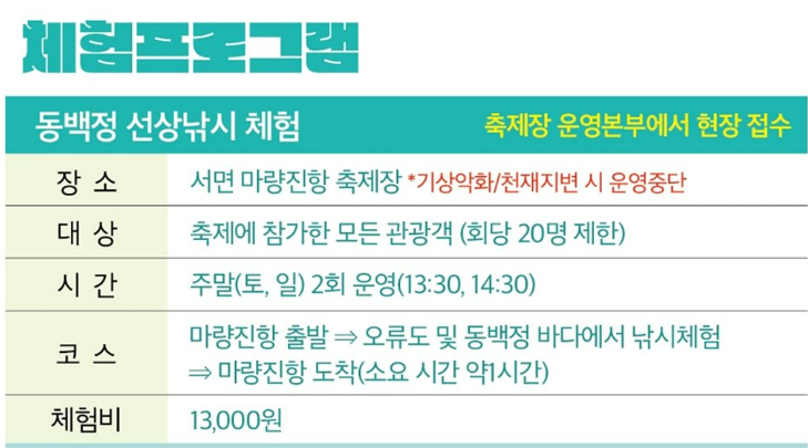 장소: 서면 마량진항 축제장 * 기상악화/천재지변 시 운영중단